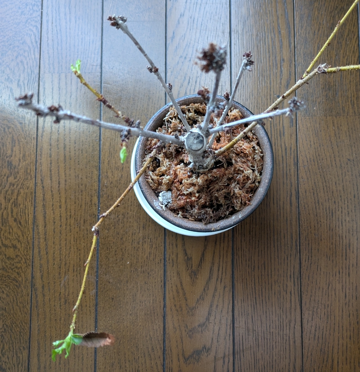 盆栽桜が2鉢めでまた枯らしてしまうのかと焦った。そこでやっと気が
