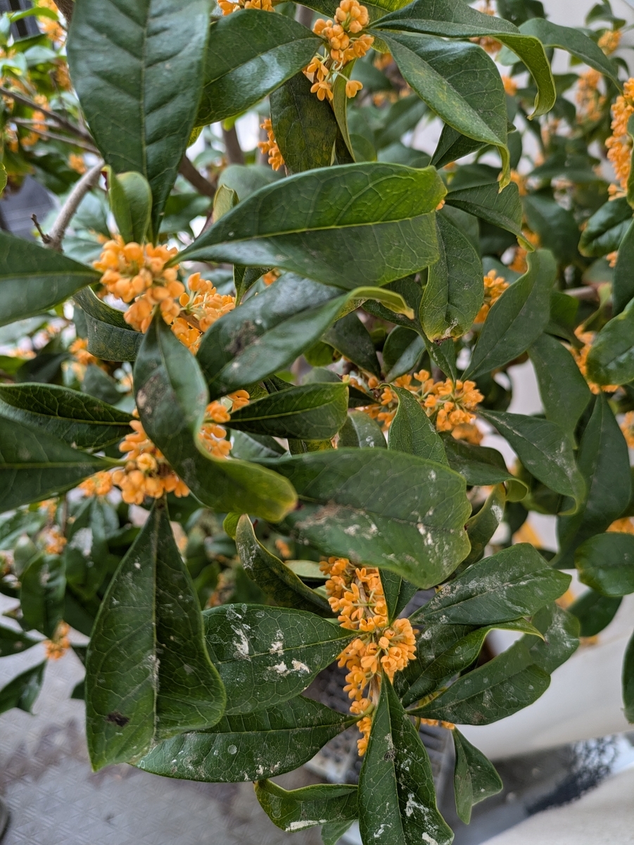 2024-10-30 金木犀が満開 金木犀が満開になった。香りもそれなりの何時もの季節。 しかし、今年は鼻水が止まらず空気清浄機をフル稼働する事になった。 今まで金木犀では花粉症の症状はなかった。違うと思いたいのだが限 界を超えたのだろうか。他にはまだ百日紅は咲いているが満開時には 特に症状は出なかった。金木犀で花粉症?なのか・・・